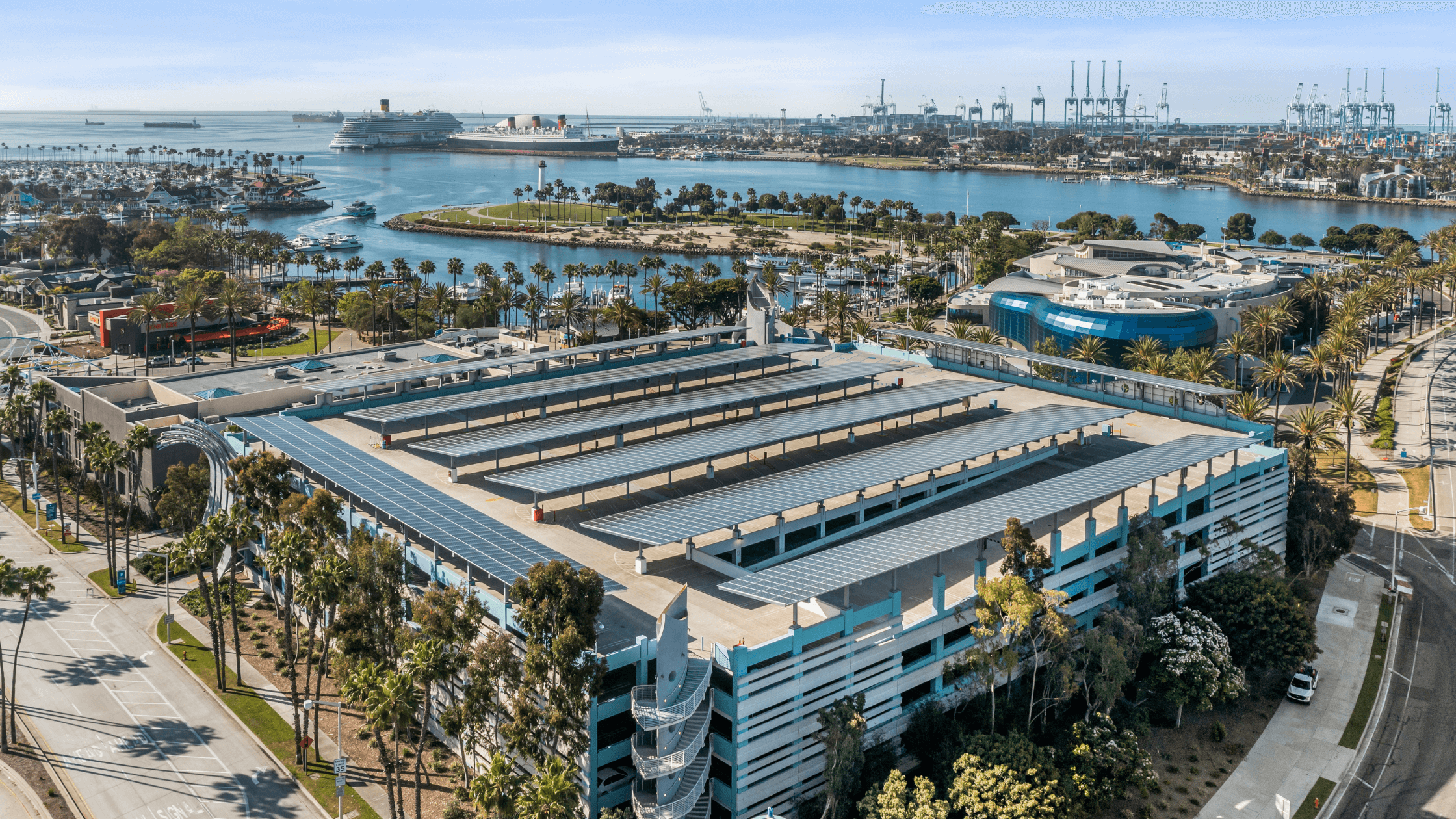 This stunning solar carport parking garage installation was completed by M Bar C Construction in 2023 at the Aquarium of the Pacific in Long Beach, CA.