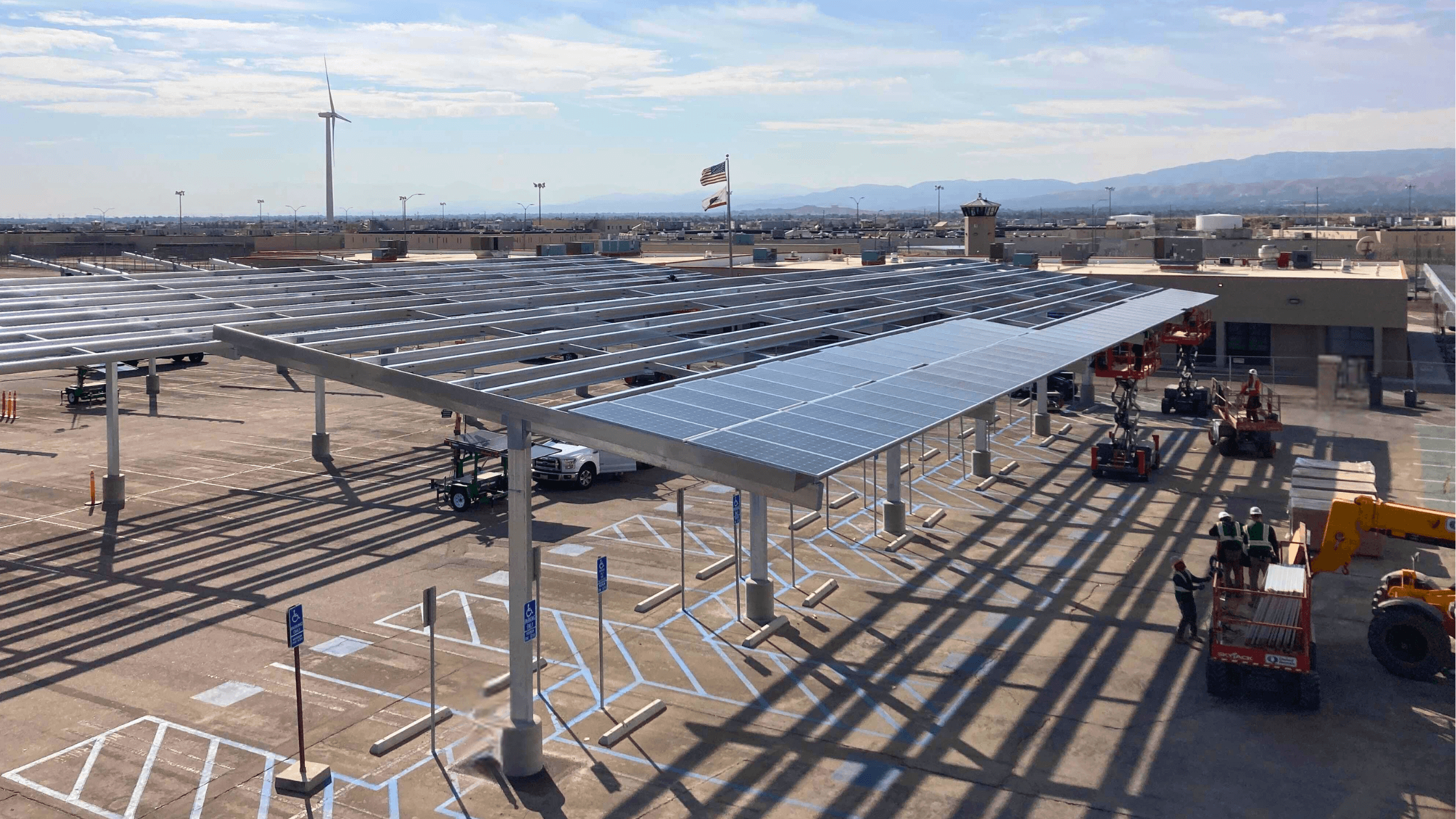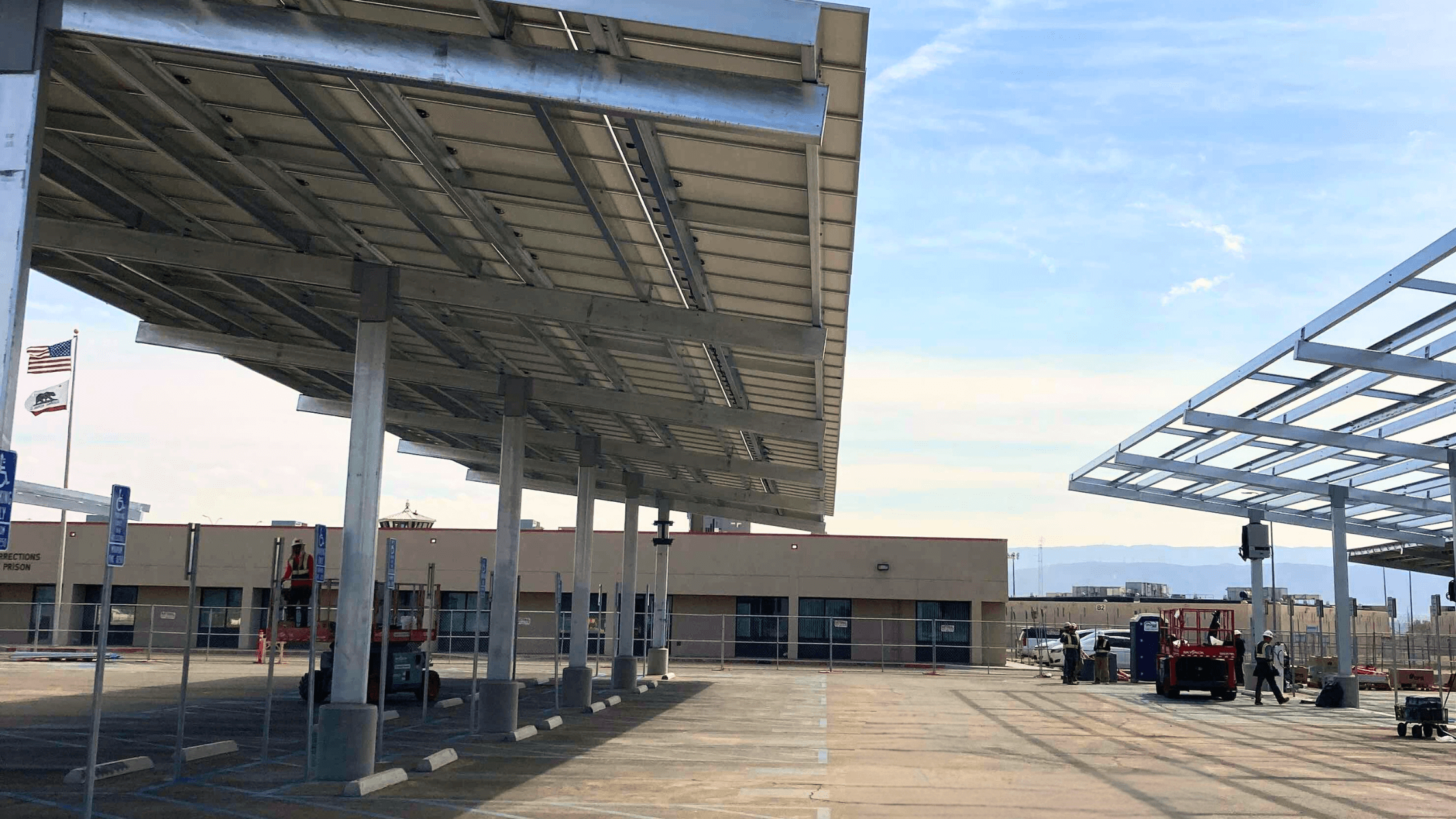 M Bar C Construction proudly completed the steel carport installation at California State Prison in Los Angeles, CA. This large-scale project included the installation of 200 structural steel columns supporting canopies that house 4,536 PV modules, ultimately enabling 1.7 MW of renewable energy generation.