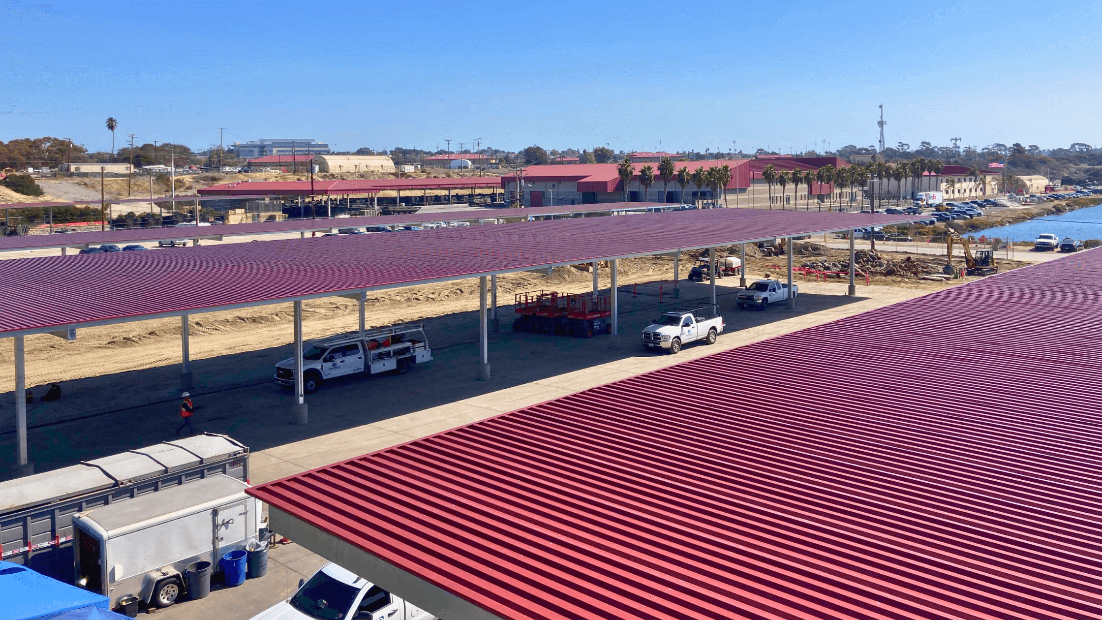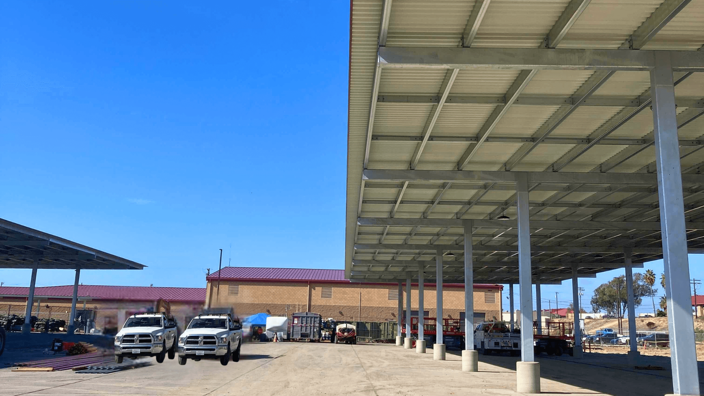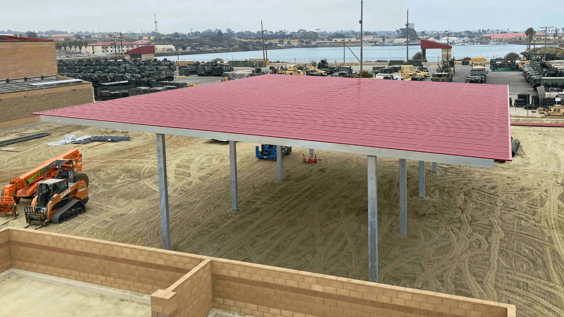 M Bar C Construction successfully completed a multi-phase non-solar carport installation at Camp Pendleton South in Oceanside, California, near the Del Mar Boat Basin. Spanning three phases, the project features shade canopies supported by 65 steel columns, providing essential vehicle protection and improved site organization.