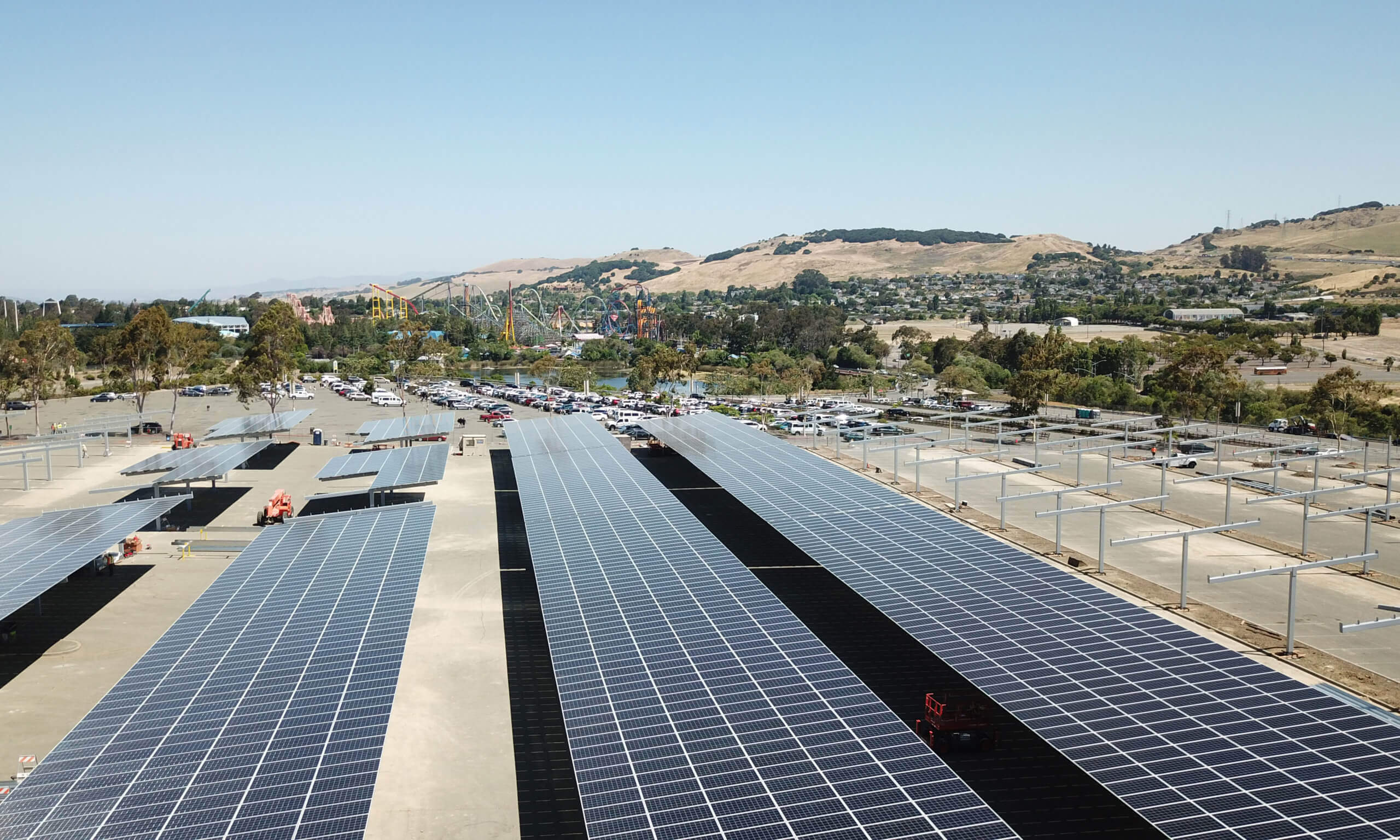 The parking lots at Six Flags Discovery Kingdom house over 7.5 megawatts of solar carports. These carports will annually provide 11.9 million kilowatt-hours of renewable energy that will directly feed the sustainability-driven amusement park.